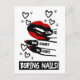 A vida é muito curta para ter Unhas chatas, esta design apresenta lábios vermelhas e longas unhas pretas e texto dizendo "A vida é muito chata para ter Unhas chatas".