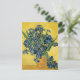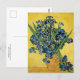 Um cartão-postal de belas artes com a pintura poste-impressionista intitulada Ainda a vida com os irlandeses (1890), do artista holandês Vincent Van Gogh (1853-1890). Uma vida tranquila com um buquê de íris violeta azul em um pote de argila contra fundo ouro.
