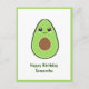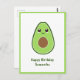 Um cartão postal com abacate fofo em estilo cartoon e um texto personalizável: um presente agradável para enviar no aniversário para um vegano, um amante de personagens Kawaii ou uma namorada!
