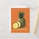 Os amantes da fruta irão deliciar-se com esta ilustração colorida de um abacaxi doce e suculento com fatias frescas de abacaxi. Encontra esta fruta tropical com uma coroa de folhas pontiagudas em t-shirts, presentes e muito mais.