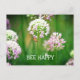 Cartão Postal Abelha com Motivação da Flor de Allium Garden Roxo