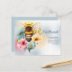 Cartão Postal Abelha Floral de Primavera de Aquarela de Anúncio