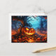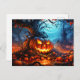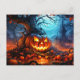 Este cartão-postal espetacular apresenta uma lanterna brilhante em frente a uma casa assombrada à luz da lua.