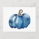 Cartão Postal Abóbora de Ação de Graças em Aquarela Azul Sazonal