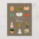 Este desenho de abóbora apresenta 12 ilustrações de diferentes tipos de variedades de abóbora com fundo bronze médio.