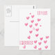 Cartão Postal ABRAÇOS & BEIJOS - Corações cor-de-rosa em aquarel