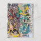 Cartão Postal abstract collage blue yellow circles