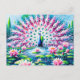 Cartão Postal Abstract Peacock by the Pond with Water Lilies