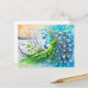 Cartão Postal Abstract Peacock in Spring with Snow and Flower