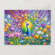 Cartão Postal Abstract Peacock with Crocuses in Oil Paint