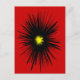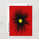 Este postal apresenta um desenho abstrato dramático de uma flor preta com um centro amarelo ouro sobre um fundo vermelho escarlate.
