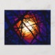 Esse cartão-postal contemporâneo de belas artes apresenta uma interpretação abstrato da lua à noite pelos ramos de uma árvore. As cores brilhantes do espectro de branco, amarelo, laranja, vermelho, marrom, rosa, roxo, magenta, azul e preto dão a ilusão de um padrão moderno de vidros manchados.