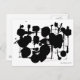 Um cartão poste com um design abstrato expressionista que consiste em grandes manchas negrito e linhas mais finas que se encaixam em harmonia clássica.