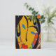 Cartão Postal Abstrato face e flores