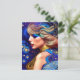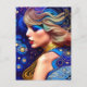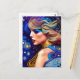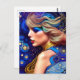 O rosto de uma mulher loira com bela sombra azul no meio de uma galáxia abstrato gerada pela IA