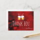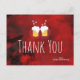 Um cartão postal de agradecimento de festa com um padrão abstrato moderno. Cores vermelhas e pretas se misturam e se entrelaçam. Criativo, artístico e único com um toque sombrio e misterioso. Um par de canecas de cerveja espumosas tilintam juntas. Mensagem personalizada no verso.