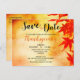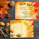 Este janto de Ação de Graças inicial, salve a data em que os recursos do convite caem ao longo da borda esquerda na frente com um design similar no verso. Personalize o texto nos campos modelo na frente e no verso ou clique em personalizar para selecionar um estilo de fonte, tamanho e cor preferidos.