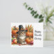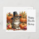 Cartão Postal Ação de Graças Pergrim Cat e Pumpkins