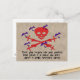 Crânio e ossos cruzados feitos de cruzes com morcegos voando em volta e as palavras: "Trate sua religião como seus genitais. Não desfile em público e não esfregue na garganta de todos."