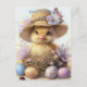 Cartão Postal Adorable Duckling Straw Hat Easter Egg Flowers