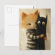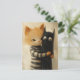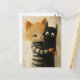 Cartão Postal Adorable ginger cat and a black kitty ghost