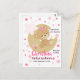 Adorável design de nascimento de uma menina que apresenta um desenho animado de ursinho de pelúcia sentado na lua e estrelas na cor escura, rosa claro e creme. Fácil de personalizar substituindo o nome e os detalhes pelo seu próprio.