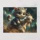 Cartão Postal adorável gatinha de cinza cavalgando uma cabra