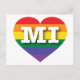 Este cartão-postal apresenta um coração com um design de orgulho arco-íris e as letras maiúsculas, brancas, negros MI, a abreviação oficial de Michigan, estado dos Excelentes Lagos. O reverso do cartão postal é vazio, aguardando seu texto personalizado ou sentimentos manuscritos. Mostre suas cores verdadeiras, apoie a igualdade do casamento e comemore a orgulho gay.