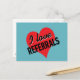 Eu adoro as referências de design com coração vermelho em um fundo aqua é excelente para os corretores ou qualquer empresa de serviços lembrarem seus clientes de recomendá-lo. Envie para seus clientes felizes após a conclusão de um trabalho ou serviço, ou apenas para seus amigos e associados como um lembrete de marketing direto.