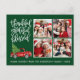 Colagem de Fotos de Férias com Letra de Caligrafia Moderna Agradecido Abençoado inclui um Caminhão Vermelho Antigo com Árvore de Natal em Aquarela. Fundo Verde Floresta.