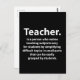 Cartão-postal de Agradecimento aos Professores Preto e Branco, design original de Nisha Prabhu. Mostre sua gratidão sincera com nosso elegante Cartão-postal de Agradecimento aos Professores Preto e Branco! Este cartão-postal lindamente desenhado apresenta uma citação inspiradora e um tema preto e branco atemporal, tornando-o a maneira perfeita de expressar sua apreciação pelos educadores incríveis em sua vida. Seja para a Semana de Agradecimento aos Professores, um agradecimento de fim de ano ou apenas um ato aleatório de gentileza, este cartão-postal é uma maneira encantadora de transmitir sua admiração.