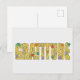 Mostre sua gratidão ou inspire um ente querido a ser grato com esses cartões-postais caprichosos e inspiradores. O design elegante apresenta a palavra "gratidão" escrita em texto decorado com fundo amarelo mostarda, flores coloridas e padrões de tatuagem henna floral.