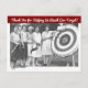 Agradecimento de campanha de arrecadação de fundos ou doador com uma foto engraçada em preto e branco de mulheres vestidas em um concurso de arqueiria de 1931. A foto mostra as mulheres sorrindo e em pé ao lado do alvo cheio de flechas. O texto (editável) diz Obrigado por Nos Ajudar a Alcançar Nossa Meta! Escreva sua mensagem pessoal no verso. Envelope opcional.