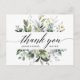 Cartão de Agradecimento de Casamento com Caligrafia Moderna, Aquarela Botânica Elegante inclui folhas de eucalipto, folhagem botânica verde, folhas azuladas e outras belas folhagens botânicas.