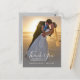 Este elegante cartão postal de agradecimento de casamento oferece uma moldura de foto vertical que preenche a frente do cartão. É acentuado com um texto estiloso em estilo manuscrito e um gradiente cinza claro na parte inferior. Personalize este cartão postal com sua foto de casamento favorita, uma curta mensagem de agradecimento, nomes e data do casamento.