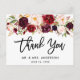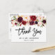 Cartão postal de agradecimento de casamento em Script Pincel Floral Borgonha moderno