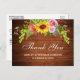 Cartão de Agradecimento de Casamento de Madeira Rústica, Girassol Aquarela Floral com Rosas, Peônias e Folhagens