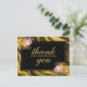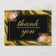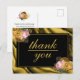 Cartão Postal Agradecimento de Casamento Floral Preto Dourado Mi