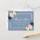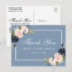 Cartão Postal Agradecimento de Casamento Floral Rosa Poeira Azul