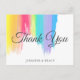 Lindos cartões-postais de agradecimento de casamento com aquarela arco-íris e pinceladas artísticas cheias de cores vibrantes. Esses cartões coloridos de agradecimento são perfeitos para um casamento artístico. O design alegre é ótimo para uma cerimônia de verão.