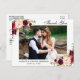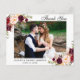 Cartão Postal Agradecimento de Foto de Casamento Floral Borgonha