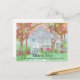 Um correio de cartão postal personalizado de agradecimento de imóveis para compradores de casa decorado com uma casa estilo cottage Tudor com árvores e flores coloridas pintadas com aquarelas pastéis. Você pode personalizar a frente e no verso há uma área personalizada para seus detalhes que você pode personalizar para atender às suas necessidades.