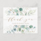 Este cartão de agradecimento empresarial apresenta eucalipto pintado à aguarela, verde botânico e folhas com brilho dourado com escrita dourada.