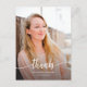 Anúncio de graduação de agradecimento, para faculdade ou ensino médio, apresentando foto em bleed total e a palavra "obrigado", em letra moderna. Personalize facilmente com suas fotos favoritas (frente e verso) e seu texto. Inclui mensagem curta no verso.