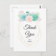 Um cartão postal de agradecimento com um lindo buquê de suculentas em aquarela pastel. Estas flores, folhas e raminhos de suculentas são rosa e verde suaves. Uma moldura geométrica trendy com uma borda de falso foil dourado envolve o seu texto personalizado. Mensagem personalizada no verso também.