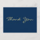 Cartão Postal Agradecimento Moderno em Azul com Letra Dourada Fa