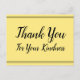 Este design de cartão postal de agradecimento elegante apresenta a mensagem "Obrigado pela sua gentileza" na frente, juntamente com uma mensagem personalizável no verso. Pode ser usado para agradecer a alguém que fez algo simpático.
