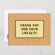 Diferencie seu negócio da concorrência com este cartão postal de "agradecimento pela sua fidelidade". A frente do cartão postal apresenta um fundo com um padrão texturizado marrom claro. Personalize rapidamente e facilmente o texto, se desejar. O verso oferece espaço para personalizar com o nome e/ou logotipo da sua empresa.