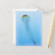 Uma pintura de aquarela de uma água-viva, com um topo colorido, no grande, aberto e azul oceano.