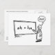 Este cartão postal divertido fará o dia de qualquer um! Um desenho humorístico tem um cientista no seu quadro branco. Quando ele termina de escrevendo sua equação "ah = ha", ele pensa com alivio: "AHA!" Excelente para estudantes de STEM, professores, pesquisadores... ou qualquer um!